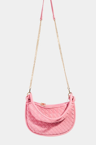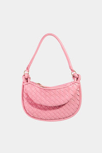 Fame PU Leather Basket Weave Half Moon Bag - Pink / One Size
