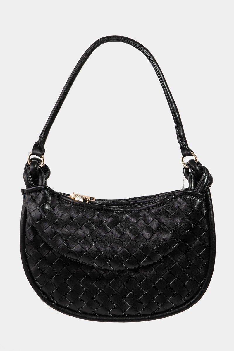 Fame PU Leather Basket Weave Half Moon Bag Sale