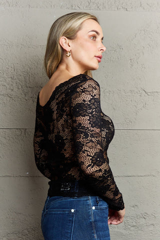 This exquisite piece is designed to accentuate your feminine charm and make a lasting impression wherever you go. This top features delicate lace fabric that creates a beautiful textured pattern, adding a touch of sophistication to your ensemble. The off-shoulder design showcases your graceful neckline, while the fitted silhouette accentuates your curves in all the right places, providing a flattering and comfortable fit. The long sleeves offer an alluring balance of coverage and allure, perfect for both daytime and evening wear. The scalloped V neckline adds a romantic and unique touch, drawing attention to your collarbone and framing your face beautifully. It's a versatile piece that can be effortlessly dressed up or down, making it suitable for various occasions. Whether you're attending a cocktail party, a date night, or a special event, this top is sure to make you the center of attention. Pair it with tailored trousers or a chic skirt for a sophisticated look, or opt for jeans and heels for a more casual yet stylish ensemble. The possibilities are endless. We've ensured that this top not only looks exquisite but also feels amazing against your skin. The premium quality lace fabric is soft and breathable, allowing you to move with ease and comfort throughout the day or evening. It's a timeless addition to your wardrobe that you'll cherish for years to come.